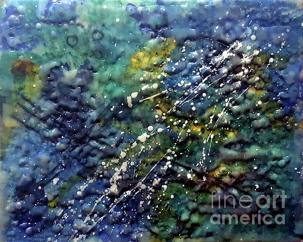 While working on this encaustic piece with the vibrant colors of alcohol inks, I built up the layers of wax with lots of texture. It started to take on a look of the further reaches of the galaxy, thus its title of "Beyond Here".